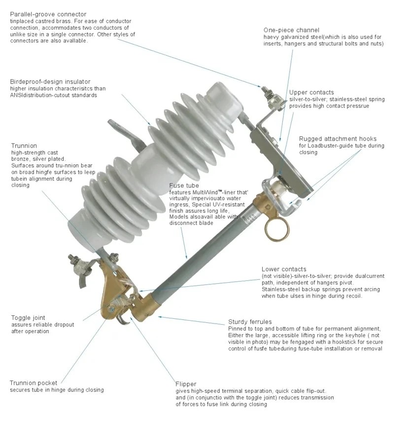 O recorte de fusível cerâmico com queda de alta tensão com suporte depende de interrupção térmica para proteção contra sobrecorrente. Eles usam este princípio básico em todos os cenários operacionais.