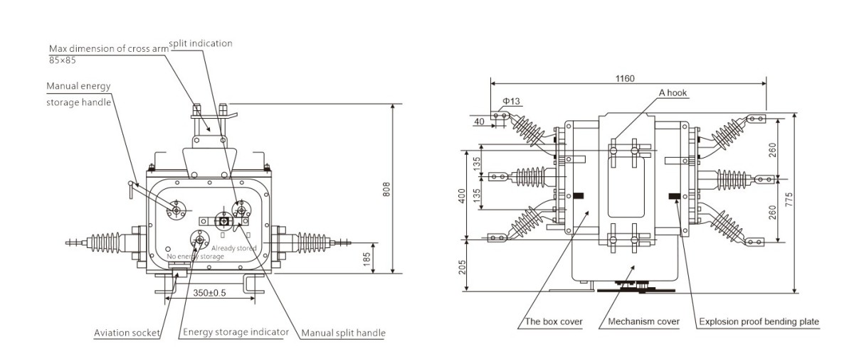 O disjuntor a vácuo SF6 externo série ZW20 fabricado na China também vem com funções práticas extras: proteção contra sobrecorrente, um indicador de armazenamento de energia de mola de mecanismo e um soquete de aviação para conexões elétricas secundárias. É super fácil emparelhar com controladores inteligentes.